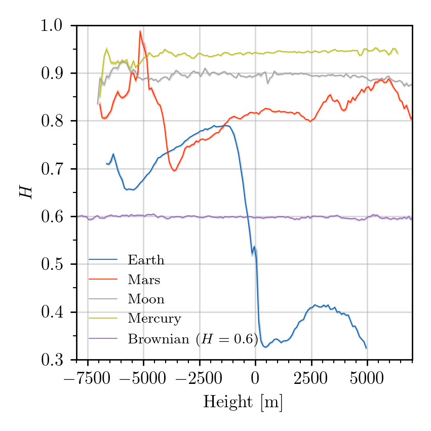 I am interested in using open access data on the topography of different Solar System bodies, especially Mars, and to study the fractality of those surfaces. This is motivated by water leaving strong imprints on Earth’s topography, especially in the fractal dimension of isolines and other scale-free quantities such as the Hurst exponent or Korcak exponent. There is evidence of paleo-oceans on Mars, however special care has to be taken when interpreting the present-day shorelines on Mars, as the surface has been modulated by tectonic plates, volcanic activity, and other natural processes. Neverthless this approach could serve as an interestic diagnostic for the existence of water on Mars.